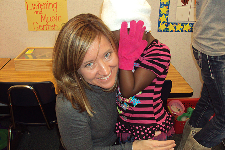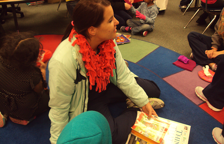 The RSTE students and faculty personally handed out caps and gloves to 27 pre-K students, then stayed to read to the children and munch on apples.